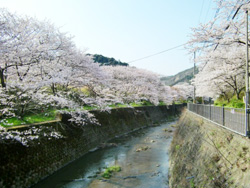 大阪府と和歌山県の境に程近い大阪府阪南市山中渓地区は、江戸時代には徳川紀州家が参勤交代に供する紀州街道第一の宿場があったところで、昭和中頃までは温泉宿として賑わいましたが、その後は人の往来も少なくなっていました。地区では、紀州街道の古い町並みが残る山中渓周辺に豊かな自然を復活させるべく、昭和40年代から山中川の河川敷にサクラの植栽を始め、現在では、約1000本の見事な桜並木となって一円に有名となり、多くの花見客が訪れ、地区の活性化に大きく寄与しています。