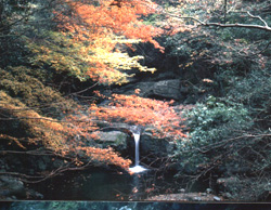有数の行者が今も修行に集まり、行者の滝では滝に打たれる修験者の姿が見られます。特に犬鳴山は女人大峰とも言われ、女性の行者も多く修行されています。犬鳴山中には、大小四十八滝があり、その中で特に両界の滝、塔の滝、弁天の滝、布引の滝、古津喜の滝、千手の滝、行者の滝の七瀑が有名です。犬鳴渓谷は伝説に彩られた名刹を始め雄大な山岳景観や四季折々の美しい自然に恵まれています。