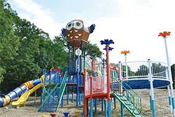 永楽ゆめの森公園は、甲子園球場の約4倍(約5ヘクタール)の広さがあり、大型複合遊具や府内最大級の大型すべり台をはじめ珍しい遊具や健康遊具、さらにはスケートボード広場もあります。
