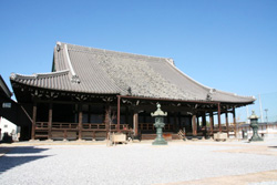 寺内町は、貝塚御坊・願泉寺を中心に中世末頃に形成された自治集落。願泉寺は16世紀後半に浄土真宗の本山・本願寺が置かれたこともあり、古い由緒を持つ寺院です。本堂、庫裏、鐘楼など江戸時代につくられた迦藍が今も残っています。南海本線貝塚駅に近い貝塚寺内町の一角は、土蔵や格子戸などが小路のところどころにあり、かつての街の繁栄ぶりを物語る姿も数多く残っており、貝塚の歴史を物語っています。