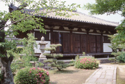 聖武天皇の勅願を受けた、行基によって建立されたと伝えられ、畿内四十九院の一つであるとされる寺院。現在の御堂は、鎌倉時代後期に再建されたもので、大阪府下で最古の部類の木造建築物として国宝に指定されています。建立時に釘を使用していなかったとされることから、別名「釘無堂」と呼ばれ、平安時代中期の本尊阿弥陀如来をはじめとする仏像群19体と板絵1枚が安置されており、いずれも重要文化財に指定されています。