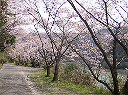 泉南市と和歌山県の境界にほど近い東信達地区の山中にある、周囲4km、総貯水量約250万tの灌漑用ダムの周囲に植えられた桜並木は、春の訪れとともに美しい桜の花を咲かせ、散策に訪れる人々を迎えてくれます。春の芽生えの緑と、桜のピンクが美しいダムの水面に映え、お花見シーズンには多くの見物客で賑わいます。
