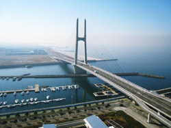 りんくうタウン北地区と中地区を田尻漁港を跨いで結ぶ位置にあり、全長338.1メートル、幅26.3メートル、往復4車線、高さ110メートルと国内でも大きな斜張橋で、景観も美しい橋です。