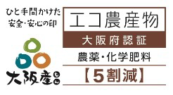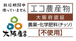 大阪エコ農産物認証制度は、農薬の使用回数・化学肥料(チッソ)の使用量が大阪府内の標準的な使用回数・量の半分以下で栽培された農作物を「大阪エコ農産物」として、大阪府が認証する制度です。 認証された農作物は、認証マークを表示し、販売することができます。