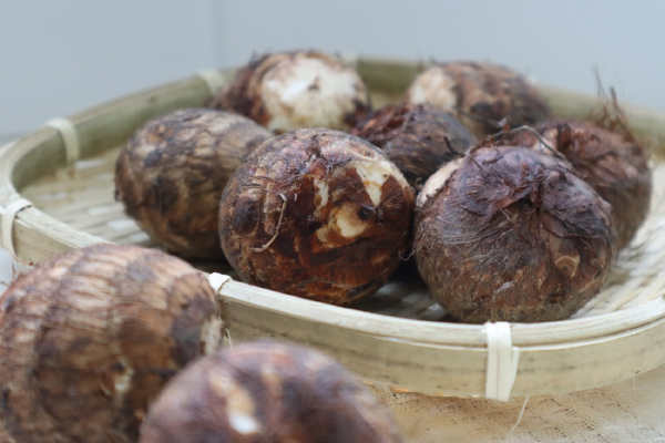 きめが細かく、丸くて形の良い泉州さといも(品種「泉南中野早生」)は通称「月見芋」と呼ばれ、中秋の名月に皮のままゆでる「きぬかつぎ」に使われます。また、さといもは子孫繁栄の象徴として、お正月などに縁起物として用いられます。