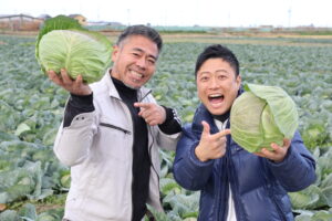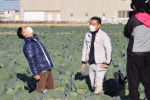 同番組の大阪産(もん)応援サポーター、やのぱんが射手矢さんの圃場を訪れ、射手矢さんは松波キャベツの魅力をPRしました。