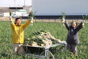 3月10日、当JA組合員である馬場一道さんの圃場(泉佐野市)で、フジテレビ「四季彩キッチン」(2022年5月16日放送)の取材があり、泉州玉ねぎが取り上げられました。