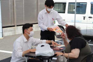 6月15日に熊取支店、6月23日に貝塚北支店、7月13日に阪南支店、7月15日に泉佐野中央支店で移動販売車を活用した農産物の販売とアンケート等を実施しました。