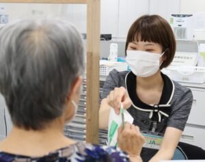 りんくう支店は支店協同活動の一環で、7月7日・8日に来店いただいたお客様(各日先着50名様)へ旬の地元野菜をプレゼントしました。
