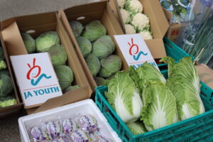 青壮年部と女性協議会は2月10日、貝塚市にある児童養護施設「三ケ山学園」を訪問し、青壮年部からは水ナスやキャベツなどの地場産野菜を、女性会からは子ども雑誌「ちゃぐりん」とお菓子の詰め合わせをプレゼントしました。